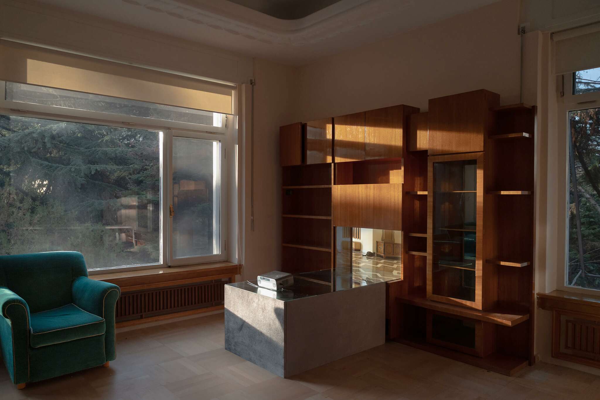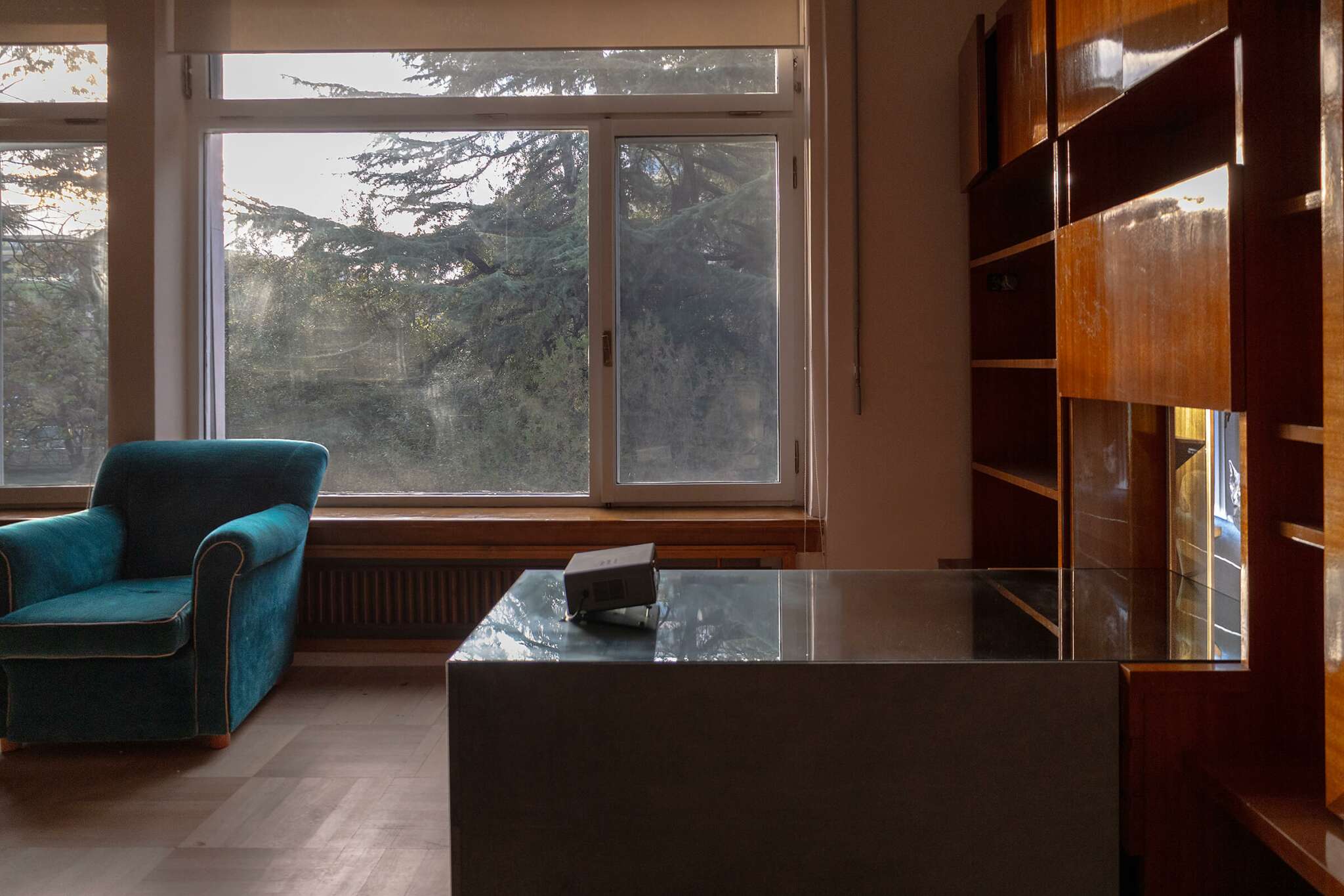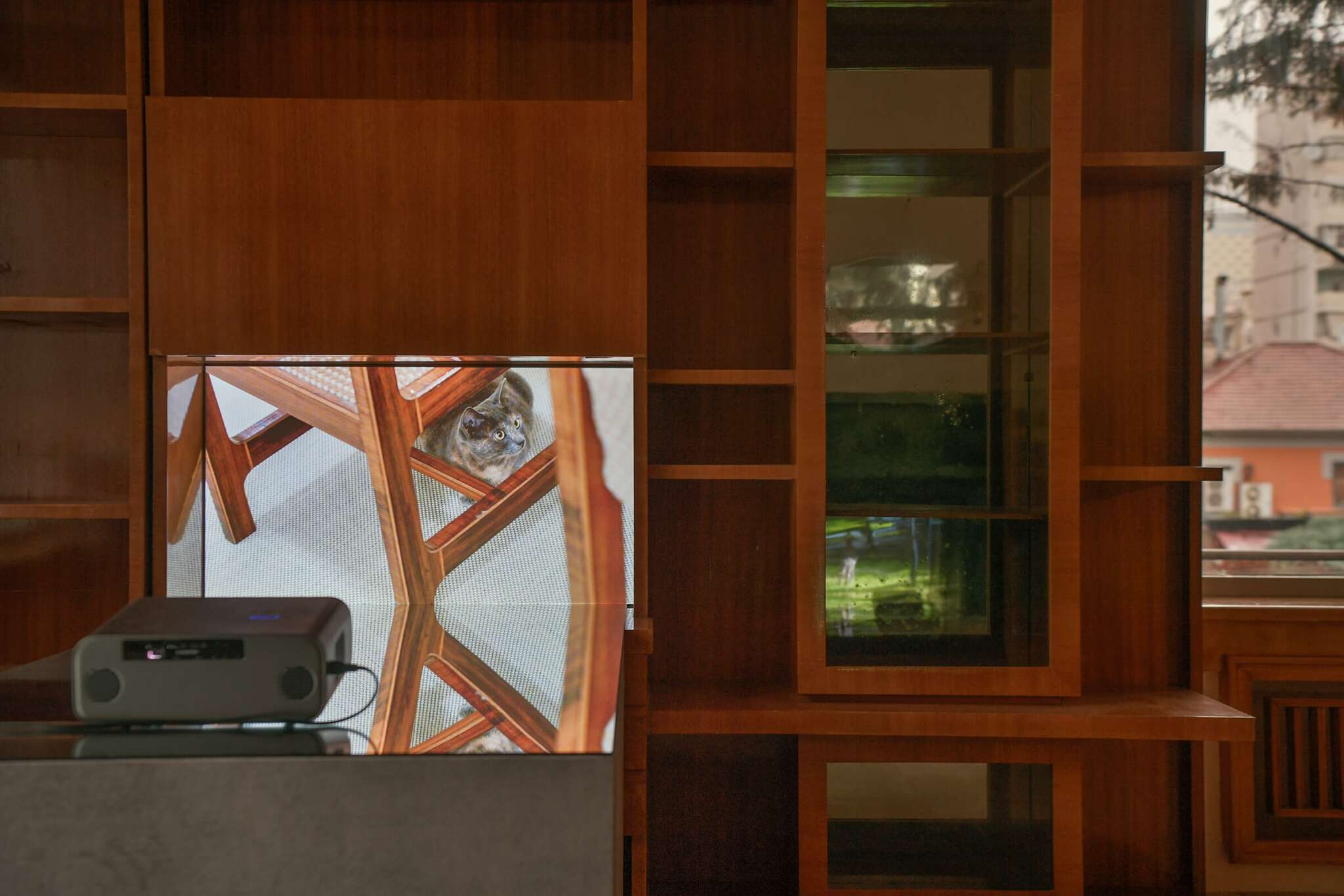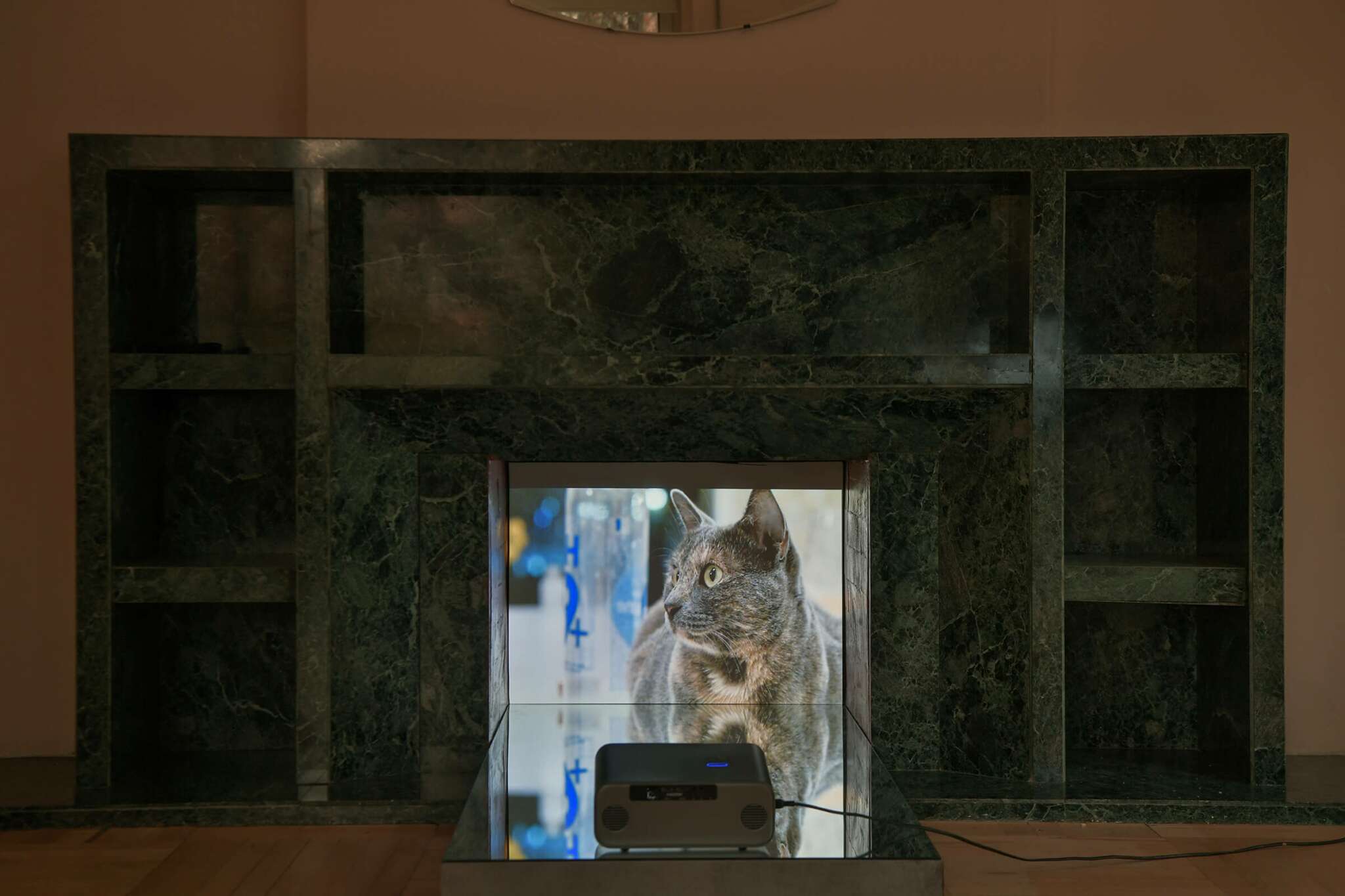 Oursa is a cat residing in an artist residency and cultural center that was the former home of Albanian dictator Enver Hoxha. Here, the camera lens follows Oursa’s daily activities: observing, lurking, sleeping, and toying with smaller prey, bringing lizards into the vast hallways of the building and often leaving them frozen and partially dismembered. These clips are intentionally not arranged as a narrative, but rather as a sequential, loosely categorized index.